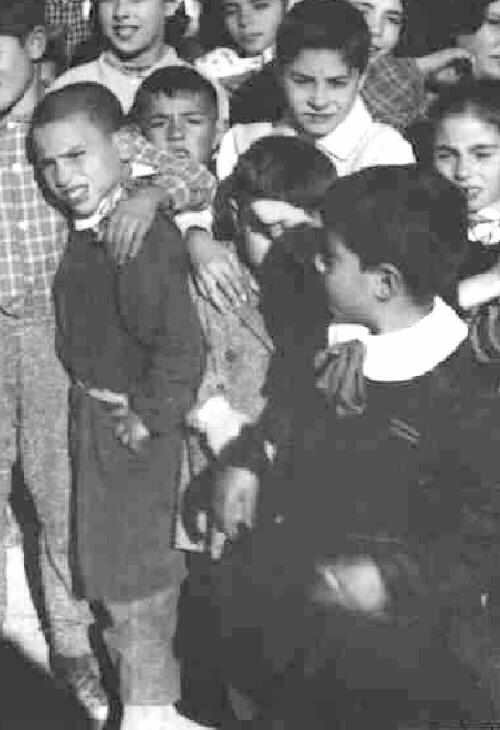 We are not yet sure about age conventions with collar and bow styles. The wide white collars and bows do not appear to be associate with age. Rather they were worn by all the children wearing school smocks, not just the younger children. As far as we can tell all the children in some primary schools wore these blue smocks with wide white collars and red bows with no detinction of age. These seems to be primarily styles adopted by schools rather than chosen by parents. Thus age does not seem to have been a factor. We do note some group shots with children wearing various clothes, but we believe this may show children from various schools. Hopefully our Italian readers will provide us some insights as to the age conventions associated woth these white collars and bows.