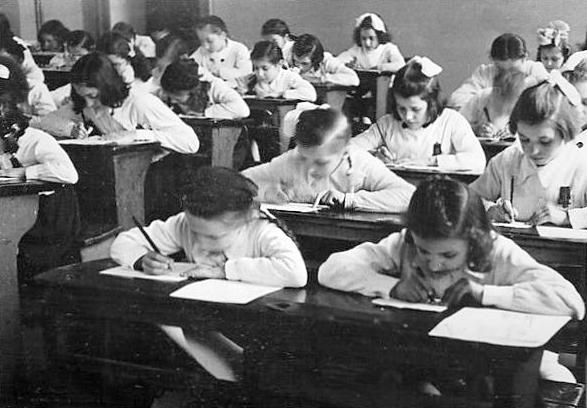 Historically HBC is not sure what color smocks boys and girls wore. We see many images of boys and girls wearing dark smocks during the early-20th century before World War II. In more recent years, Italian boys generally wore dark-colored smocks. Girls and very young boys have been more likely to wear light-colored smocks. We are not sure when light colors first appeared. We see them in the 1930s, bit are not yet sure about earlier periods. There were no hard set rules as we see the girls here wearing dark-colored smocks. Dark-colored smocks for boys and light-colored smocks for girls was, however, a very prevalent convention. Just what the colors were we are not sure. We think the dark-colored smocks were commonly navy blue. We are not sure about the lihjt-colored smocks. Some were white, but there may have been light colors as well. We do not begin to see colored images until the 1970s. We see some girls wearing pinl smocks, but we do not nelieve tht was the case in the early- and mid-20th century.