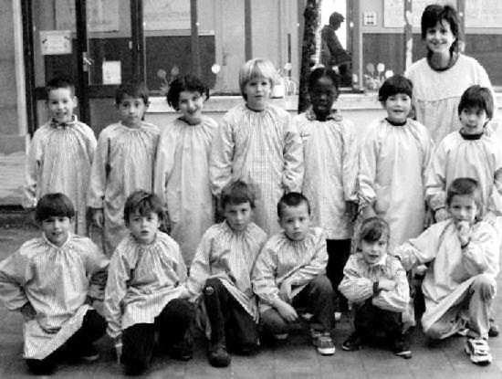 Figure 1.--TThese children look to be mostly boys. The impge is undated, but was probably taken in the 1990s. Note that these simple smocks, some quite long, have no detailing. The neck and cuffs appear to have elasticized or drawstring treatment. |