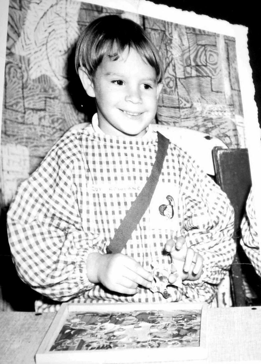 We have begun to assess the chronology of English school smocks, but our information to date is limited. We have no evidence yet to confirm that boy commonly wore smocks to school in the late-18th and early-19th century a time at which smocks wereworn in rural areas. (Of course that does not mean that they definitively did not.) We suspect that children in rural areas probably did, but we can not prove it. But unlike America there were few schools in rural areas. England lagged begind America and German in creating a public school system. Boys rarely appear in the 19th century images we have found wearing smocks. French schools began requiring smocks at the onset if the Third Republic (1870s). The idea was to create an ethos of equality. Britain of course was a monarchy and never promoted an ethos of republican eqalitarianism. We know much more about the 20th century. Private schools did require uniforms, but we know of very few schools that required older boys to wear smocks. We have a substantial archive of British school images so e believe smocks would show up if they were very common. A few private schools did use smocks for the pre-prep boys. This may have been realtively common in the 19th century. Even in the 20th century, however, smocks were worn at some prep schools. They may have just been used at school, primarily for the younger boys. Hee we see a good example in the 1960s (figure 1). Other than the buttoning arrangements, there were other stylistic alternatives.