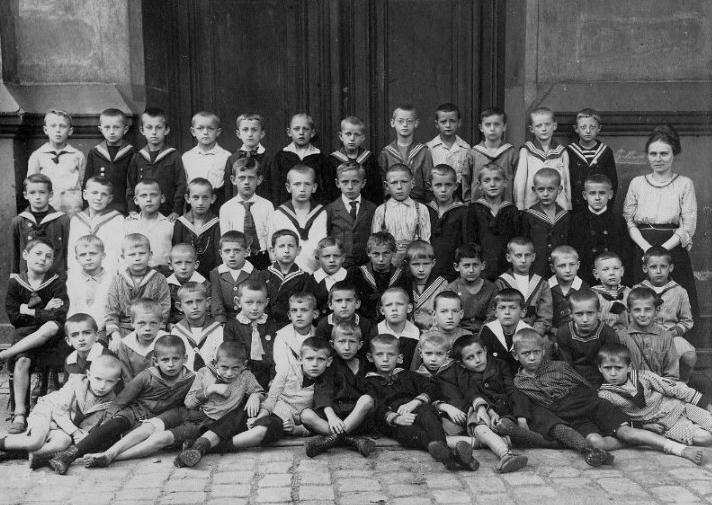 Sailor suits continued to be very popular for schoolwear in the 1910s. We see some classess where more than hald the boys are wearing sailor suits. It was quite rare to see a class in which at least some of the boys are not wearing sailor caps. And we still see qite a rangeof styling. Traditional styling was becoming more common, bit we still see quite a range of stylistic vasriarion. Of course there were variations from school to school. The community affected dress. Boys in urban middle class areas were most likly to wear sailor suits. Boys in working-class and rural areas some wjhat less likly, nut even in these areas we see quite a few sailor suirs. Age was another factor. The younger boys were most likely to wear sailor suits, but they were still widely worn by boys 12-13 years of age. After this the prevaklence oif sailor suyits drops markedly. We do not yet have much information on the girls. Sailor suits continue to be popular throughout the decade. As far as we can tell, the war had nomimpact on the populrityof the sailor suit.