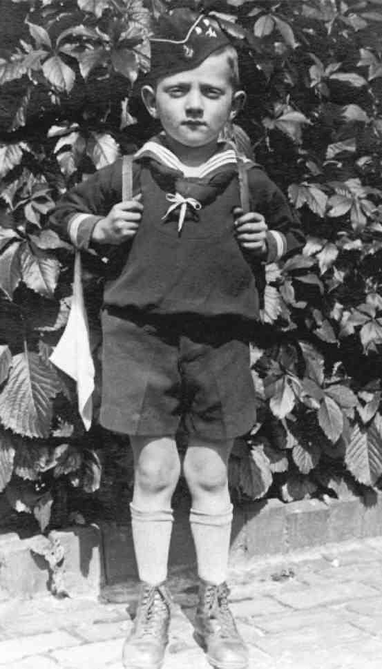 Almost all boys Sailor suits became much less common after the NAZIs seized power in 1933. The NAZIs looked on sailor suits as suitable only for the youngest boys. Here a German boy, probanly in his first year of school, wears a sailorvsuit to school, probably about 1935 (figure 1). The sailor suits that were worn were a very stadardized style based on German naval uniforms.