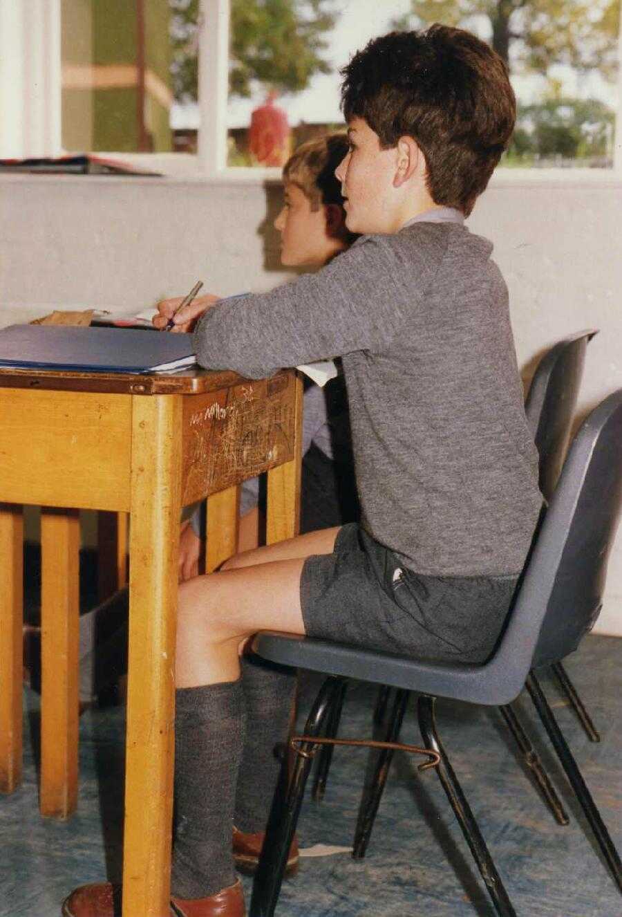 England is located at a surorisingly northern lattitude. It can be a chilly place, especially on a drizzy day, and there are normally a lot of them. Schools did not used to be as well heated as they are today. The most common jumper became the "V" neck to show the tie, but there were many other styles. Almost all were pullovers, but girls at some schools wore cardigans. Many schools once required boys to wear their blazers while at school, but this rule is now rarely observed. Private schools still generally have blazers, but boys often geberally wear just their jumpers during the school day. Boys at many comprehensives in the 1990s began wearing mostly jumpers without blazers. Many countries around the workld have adopted English school uniform sweaters.