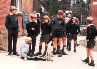 ![]() Figure 1.--The boys at this English prep school wear comfortable blue swearshirts with the school logo rather than the more traditional jumpers and ties. |