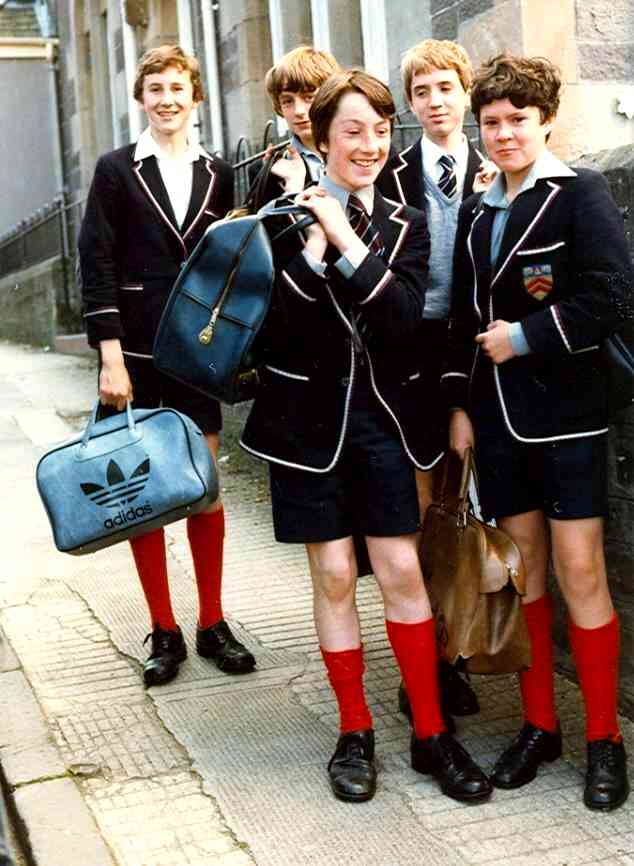 British schoolboys are especially noted for wearing ties to school. Both state and private schools required them. Dressing in comfortable clothes was not considered appropriate for school. The school tie as we know it today appeared in England in the 1920s as soft collars replaced stiff Eton collars. Ties were considered appropriate school wear as formal clothes were the standard at school. We note many boys wearing sports collars without ties. This arrangement seems to have been acceptable at many schools until well after World war II. Ties in England became increasingly common in the 1960s, even at primary schools. Scottish schools seem to have been more flexible about ties. The ties were usually stripped in the school colors. Each school might have several different styles and colors of ties. Often prefects or boys who "won their colors" received the honor of wearing distinctive colors. Many elementary schools in the 1980s began allowing boys to wear more casual clothes, including shirts without ties. Almost all secondary schools, however, still require ties. At a few schools they are seasonal. Some Scottish schools did not require ties. This varied from school to school, many of which had a variety of rules about ties. Some schools did not require them or made them optional. Some schools required them with long trousers, but not with short trousers. These rules have changed over time.