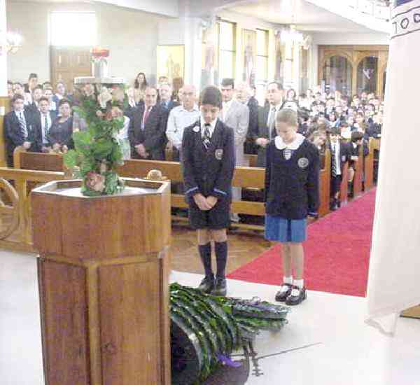 Figure 1.--There are many ceremonies associated with school life. One of the most common in many countries is religious ceremonies. This is a reef-laying ceremony in a school chapel.