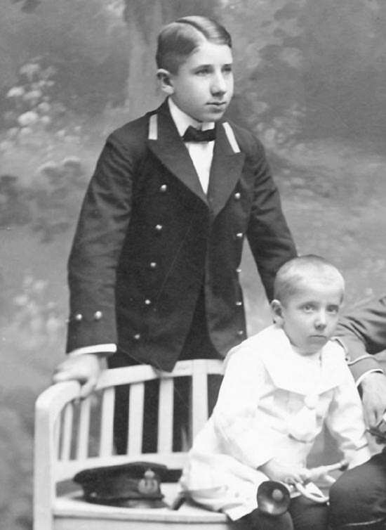 ![]() Figure 1.--This Hungarian boy was photograpohed in Budapest during 1911. We have no information about the boy, but believe he is wearing his military school uniform. Notice is younger brother with closely cropped hair wearing a sailor suit. |