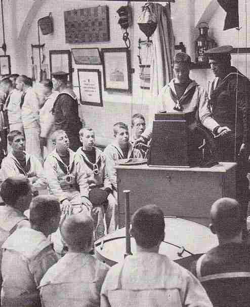 Cadets: Boys aged 13 to 15 enlisted to become officers and trained on HMS "Britannia" moored at Dartmouth.