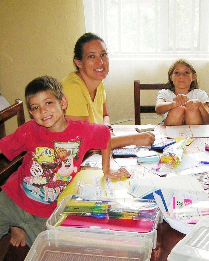 Home schooling is most done by individual families. There are some instances where parents have joined together to pool resources and capabilities. This seems most common with expats overseas. A reader tells us, "I am sending along a photograph of children enjoying a music lesson. These are expats in Nigeria. Te home school activities relate to specialalist teaching. Parents got together and had a music teacher give a singing, music lesson once a week. The home school was for five families who brought their children to the home school. The teacher was not a parent of any of the students. The home school followed the British Curriculum. The idea was to teach them to the standard needed for easy integration back into the British School system when the families returned home. Parents did the basic reading and math classes. Specialist music, drama and art teachers came to the school. parents also contributed their skills. A parent had a large garden. The children went there for a sports lesson every Friday afternoon. A family who had a swimming pool let the school have a swimming session on a weekly basis."