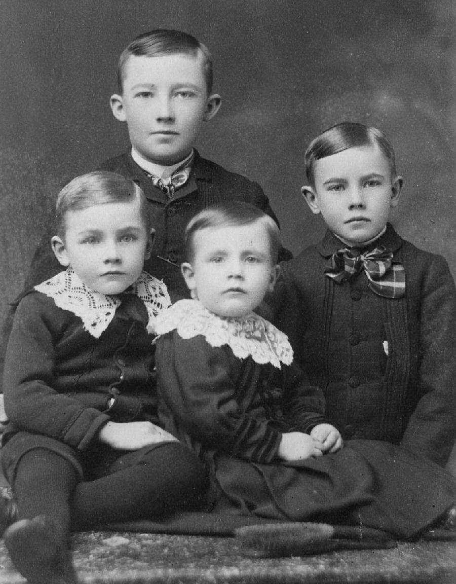 In the period before mass media, there were substantial differences from family to family. Thus it was up to mother to create her own approach to this. The mother decided such matters for the younger children. And mothers could have very different attitudes about such matters. Some mothers wanted to keep their sons like little boys while other mothers were quite willing to dress their sons in the styles for older boys. Father would have more say for the older boys. They also had varied attitudes, but not as varied as mothers. Any mothers had a reat deal to work wih during the 1890s. This was the peak of the Fauntleroy era. There was a vurtual arms race of fancy dressing wagged bybmothers durung the decade. Motherscused theie boys to demonstrate family affuence as the American indudtrial economy raced ahead. Huge ruffeled and lace collars as well as floppy bows were oopular. There were proper Fauntleroy suits as wll as regular suits to which Fauntleroy trim could be added. We also notice cllar-buttoning jackets for younger boys and lael jacket sack suits for older boys. The boys here are aood examole (figure 1). Knee pants had become standard by the 1890s and actually became knee-length garments. The length of the knee pants wee not used fir age grading. Thus was more a function of cganging styles. They were less useful for age grading, at least for school-age boys. They were used for age grading teenagers.