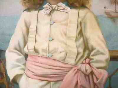 The sash was generaly made of a somewhat stiffer material with a finer finish from that of the dress or velvet Fauntleroy suit. Thus the most common material for sashes were