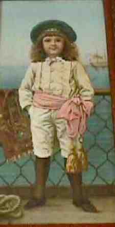 The boy's waist was encircled by a silk or satin sash. The long edges of the sash were seamed, and the ends sometimes were gathered up closely and, often finished with tassels. The tassles while not common, could be quite elaborate. (See figure 2 above.)