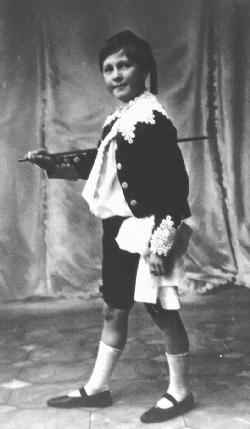 Waist sashes were the most commonly worn sashes by boys. Boys wore waist sashes with many clothing styles. They were usually added to fancy clothes like velvet Fauntleroy suits and white party dresses. They were most common for boys during the late 19th and early 20th century with the fancy outfits for boys that were poopular during that period. Sashes were worn when a mother wanted a boy in his best party suit. They were usually only added for special occasions of course and not an everyday style. The common name for a waist sash sash is "Cummerbund", a term of Indian origins. Some waist sashes simplu wrapped around the waist, like the cummerbund. Others had a knot with a length of materail falling vertically at the side from the waist sash. Some authors speculated that the color of the sashes, such as blue for boys, could have inicated the gender of the child. This was, however, not always the case as color conventions were not yet well established during the era in which boys wore sashes. The sash was generaly made of a somewhat stiffer material with a finer finish from that of the dress or velvet Fauntleroy suit.
