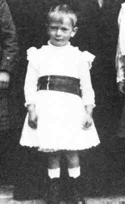 were not worn in contrast to the boys's outfit. This was probably because many kiltsuits were probably not a boy's best dress party suit, but rather often worn for less dressy occasions. The sashes worn with kiltsuits were often quite long sashes because the kuilt suits were generally worn at lengths well below the knees, down to below the boy's calfs. This was longer than the hem of the kneepants worn with Fauntleroy suits, which was generally the limit of the length of the sash.