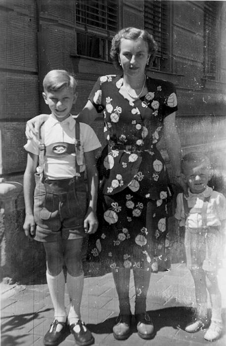 We have noted many German boys wearing long stockings with Lederhosen, but this was less common than boys wearing knee socks with Lederhosen. Several factors were involved. A major factor was seasonality. We mostly see German boys wearing long stockings during the winter and cool weather. This basic trend was true for Lederhosen like other types of short pants. In the early and mid-20th century, German boys wore short pants all year round, not just in the summer. Thus when the weather got cold, mothers insisted on long stockings. Another important factor was age. Many older boys wearing Lederhosen no longer wore long stockings. Also as Lederhosen were becoming increasingly common, long stockings were becoming less popular. Still we see a number of boys wearing them. A good example is an unidentified family in the early 50s. Another factor is chronology. Long stockings declined in the 1950s and virtually disappeared in the 60s. They were worn mostly in Rast Germany during the 60s. And for some reason we do not see tights being worn with Lederhosen like long stockings were, at least the short pants Lederhosen.