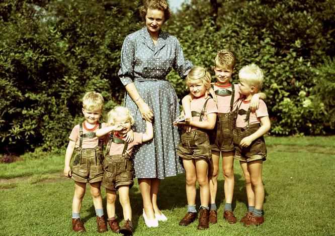 Unlike sailor suits, Lederhosen were eidely seen as a male garment. Thus we rarely see all the children in a family dressed in Lederhosden. It was sometimes the case for all the boys to wear Lederhosen, but the forls wore dresses. This was virtuslly always the case before World War II. After the War we see a few examples of sisters wearing Lederhosen as well, but not very many. Changing conventions were a factor as we begin to see a few younger girkls wearing short pants. Thus we see a few mothers not only dressing all the boys in Lederhosen, but the girls as well, at least when they were relatively young. This never beca,e a major style, in part because by the 1970s when pants for girls became nore acceptable, the popularity of Lederhosen began to decline as more children wanted to wear jeans. We are not sure what the girls thought of this, but as the only family snapshots we have found show only little girls wearing Lederhosen with their brothers, we suspect that vthey were not wild about wearing