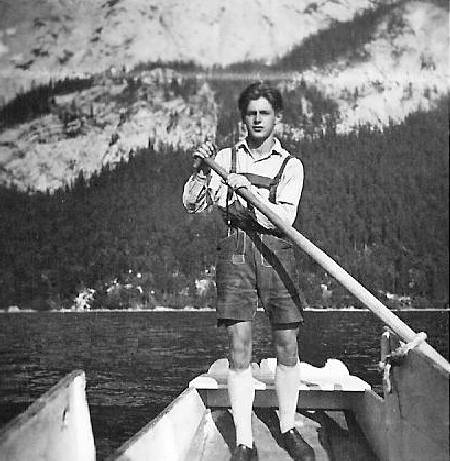 Austrian boys commonly wore Lederhosen for a wide range of outdoor activities. This seems a popular usage because Lederhosen were such durable garments. This is one garment that even boys in rough activities could not destroy. We see younger boys in Lederhosen playing in an around the house with their friends This included both informl games and sports. And we see older boys and teenagers wearing Lederhosen for all sorts of outdoor activities. This included activities like boaring camping, climbing, hiking, and many other activities. Many of these activities were those organized by youth groups. We see boys wearing Lederhosen as part of their youth group uniform. In many other instances boys wear Lederhosen while pursuing these activities with family or friends rather with an organized youth group.