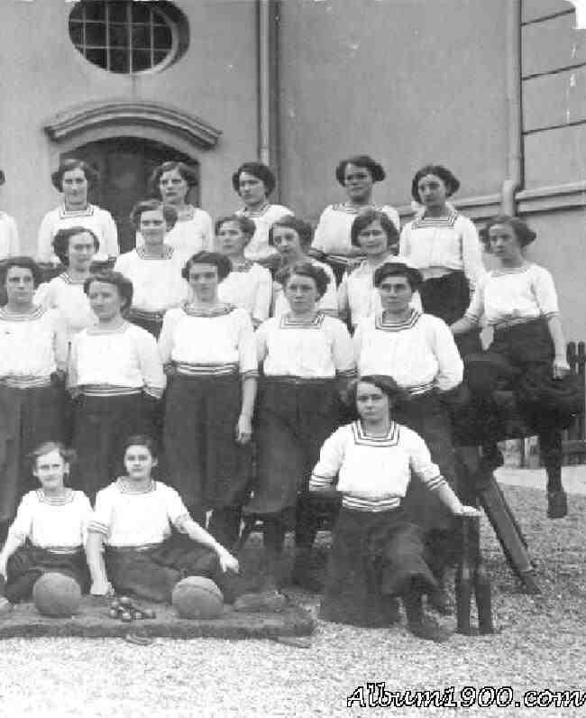 These romper outfits were widely worn in American highschools. Most American high schools had girls gym outfits with bloomers and middy blouses. These outfits wee also worn at summer camps. Bloomer or romper styled gym uniforms were still being worn into the 1960s atv some American schools (figure 1(. We do not at this time know to what extent these rompers were worn by girls as a gym outfit in other countries, if any. I believe they were worn in Britain and Germany. I'm less sure about France. One matter to consider here is that some countries had much more academic oriented academic programs than America. I an not sure that gym was an important subject in the French academic program. Most American high schools had gym and physical education programs. Sport was very important in British eduction. We are much less sure about the academic program in other countries. Nor am I sure about the foreign language terms. A German reader writes, "I asked my great aunt (93 years old) how she called that. Her answer was simply "Turnhosen". That means nothing else than 'gymnastics trousers'. Maybe these kind of trouser could be called "Pumphosen". Well, this term is not very specific. It could be used for bloomer or knickerbockers as well." The outfits used in early gym classes and camps were two-picece outfits, tops with bloomer pants. We do not know if European girls ever wore the one-pieve romper suits we note American girls wearing in the 1940s and 50s.