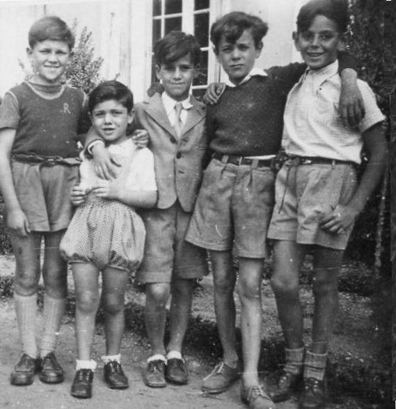 Many French boys also wore romper suits at age 5 years, perhaps not as many as the 2-4 year old group, but we still quite a number of boys in the photographic record. It is the last age that we see really largenumber of boys wearing rompers. This is because most boys did not wear rompers when they began school, We see many boys still wearing rompers as play garments at age 5. There are quite a few snapshots showing this. We see a few boys wearing rompers to 1st grade, but not very many. Nursery school was different. Some children attended maternelle (nursery school) in the 1940s, although it does not seem nearly as common as it became later in the post-War era. The maternelles were often attached to primary schools, but the programs were kept separate. We do see some of the maternelle children wearing rompers. We see fifferent sty;es, especiially romper suits anf h-bar rompers. White seems a very common color. It is a little difficult to tell from black and white photographs as light blue was also a common color.