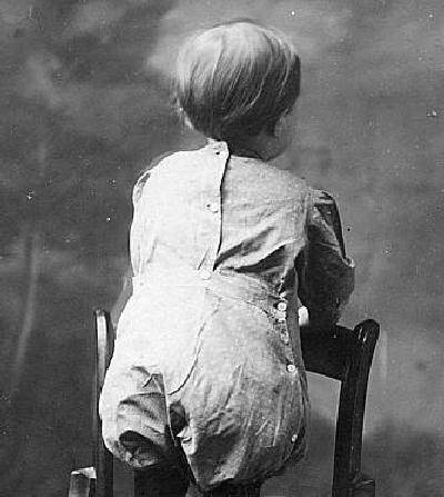 Photographs of the back of romper suits are very rare. Obviously photographers mostly shoot the front of children so you can see their faces. This is one reason that vintage clothing and sewing patterns are very helpful. We assume that this romper suit opened at the back with buttons, rather like a dress. This would mean to buttons extended from the dollar down to the waistline. Given the age of the children involved, this would make sence because most would need mother's help in dressing. It is also a reason explaining why the bodice of some rompers are done like dresses and smocks.