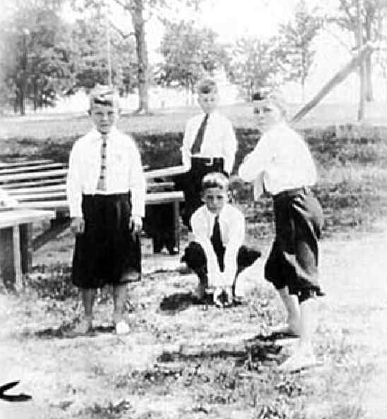 Figure 1.-- The photograph here shows boys playing baseball in the 1920s. The white shirts and ties look a little frmal. We wonder if this might be a game at a Sunday school picnic after church on Sunday.. |