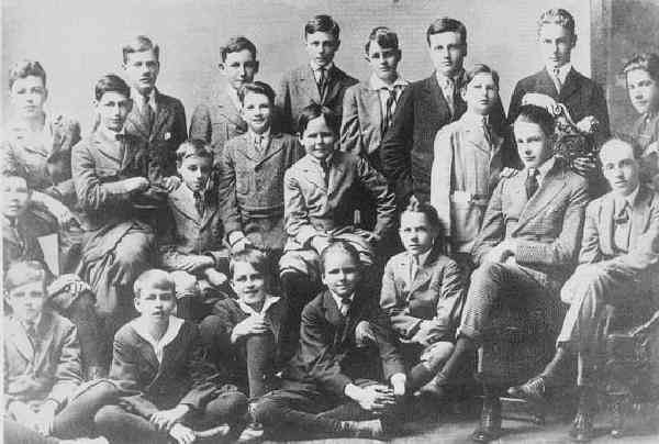 wear open-collered white shirts, a slightly more youthful style. These boys seem to be about 10 or 11. Two of the older boys on the right, perhaps 17 or 18, wear grown-up clothes--fashionable suits with long trousers. One of these is Arthur Gale, one of the founders of the club,