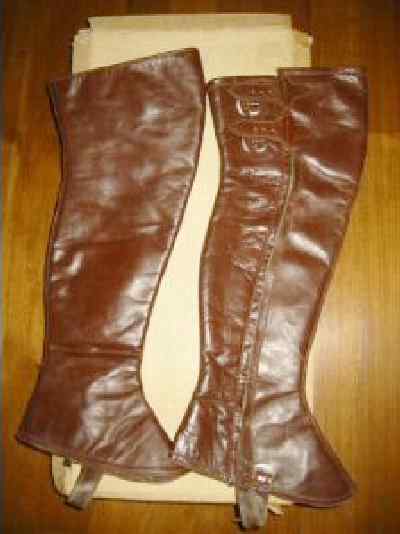 Early leggings all had button closures. We note after World war I zipper closures. The leggings seen here have zipper closures. In addition to the buttons/zippers up the side were buckles.