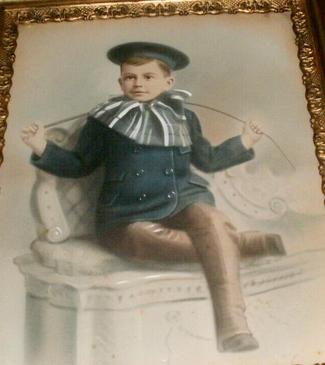 We also see boys wearing leggings with sailor suits. This seems less common than was the case for Fauntlerpoy suits. They were still done in lether in the very early-20th century.