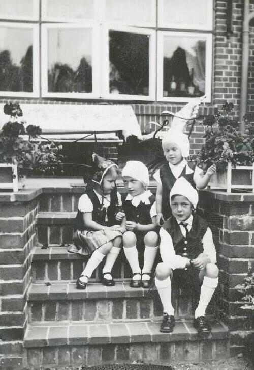 The Dutch wore a variety of picturesque garments. Perhaps the destinctive were the caps worn by women and girls. Many were quite elaborate. Some but not all has high peaks. Dutch folk dress is also famous for baggy trousers, the original inspiration for knickerbockers or knickers. Perhaps the most destinctive folk garment for boys and men are large baggy trousers--apparently the inspiration for knickerbockers. And of course the Dutch are also famous for wooden shoes although they were widely worn in France, Germany, and other countries. One of the most distinctive aspects of Dutch folk costume is wooden shoes or clogs. Wooden shoes were widely worn by peasant farmers and the urban working-class throughout Europe--but no where were they as widely worn as in the Netherlands. Many Dutch boys in the late 19th century went to school in wooden shoes. They were commonly worn by both boys and girls.