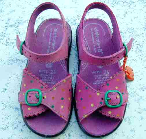 Girls' sandals also might have stylistic features like patterns. The most common is polkadots. Again some of te color combinations are quite startling.
