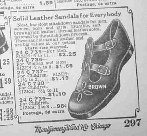 We note a few portraits of boys at the turn-of-the-20th century wearing an early open style of sandal. The images suggest that the style appeared about 1900-10. We are not precisely sure about the chronology and do not yet have any catalog offeings for this style of sandal. We have very limited information on this style. Based on the photographic record, it does not appear to have been very popular. We see many more images of boys wearing different styles of closed-toe sandal.
