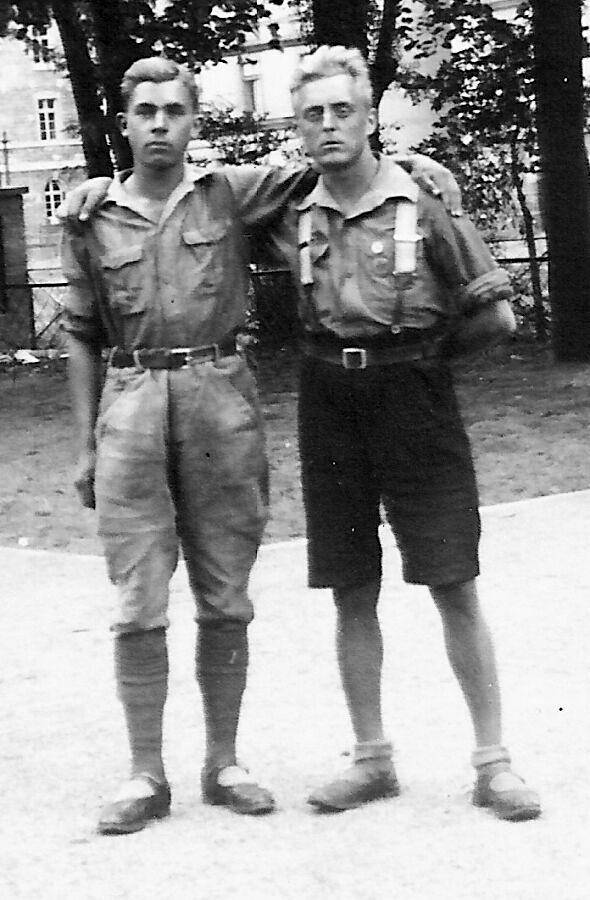 We are unsure about the colors of the strap shoes German boys wore. Almost all of our information at this time comes from black and white photographs. Black shoes were clearly very common, especially when dressing up. We also notice white strap shoes, mostly during the early-20gth century. The black and white shoes can usually be destinuished in black-and-white photographs. We are unsure, however, about the color of the many strap strap shoes won by German boys that are clearly nog black or white. There clearly were other colors. We suspect that younger boys may have worn red strap shoes. This was the case in England, but we can not yet confirm it in Germany. We suspect thst most of the strap shoes we see were various brown shades. We think that there were also dark blue strap shies. We can not yet evaluate just how common the colored shoes were. One example is two brothers in 1933. The boys seem to be wearing colored strp shoes, but we are not sure about the color. Factors such as age, gender, chronology all affected the color of srtrapped shoes worn. Our inability to assess the color in the photographic record makes it difficult to assess these various factors.