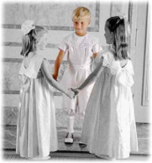 Beginning in the 1970s, saddleshoes began to be used with dressy outfits for little boys. Thus boys wearing short pants Eton suits and other dressy outfits might also wear saddle shoes. I'm not sure why saddle shoes have made this leep from casual to dressy shoes. Perhaps it was that even little boys, especially in America, stopped wearing strap shoes for formal occasions. Some type of shoe was needed for formal dress. Saddle shoes are even worn as part of a dressy suits for ring bearers and page boys at formal weddings. Certainly the boys probably find saddle shoes preferable to some of the alternatives such as sandals, buckle shoes, and strap shoes.