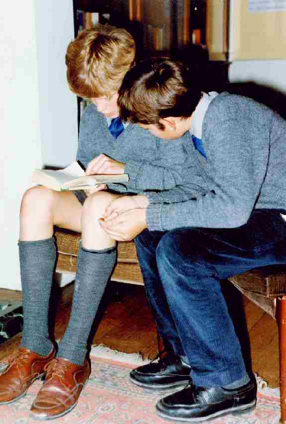 Figure 1.--Britush school boys by the 1980s commonly wore kneesocks without the turn-over-top cuffs, even in private schools. |