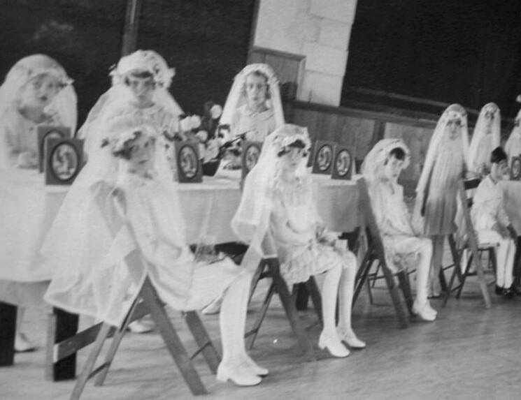 We know of few significant gender differences. Here there are some differences over time and among countries. We notice differences associated with color, weave (ribbing), and seams/contours. There were color differences. White stockings were worn more by girls than boys. Younger boys wore white stockings, but they were not very common for older boys. White stockings for dressy occassions are illustrated in a photo of unidentified Brooklyn children taken in the 1920s. One major destinction seems to have been that long stockings for older girls and women seem to have been a back seam. That was for older girls only--lisle cotton before they were allowed to wear stockings that were more sheer and grown up. Seamed stockings were never worn by boys and only by quite grown-up girls. Seamed stockings were shaped stockings, made to fit the contours of the adult female leg, whereas children's stockings (for both boys and girls) were unshaped