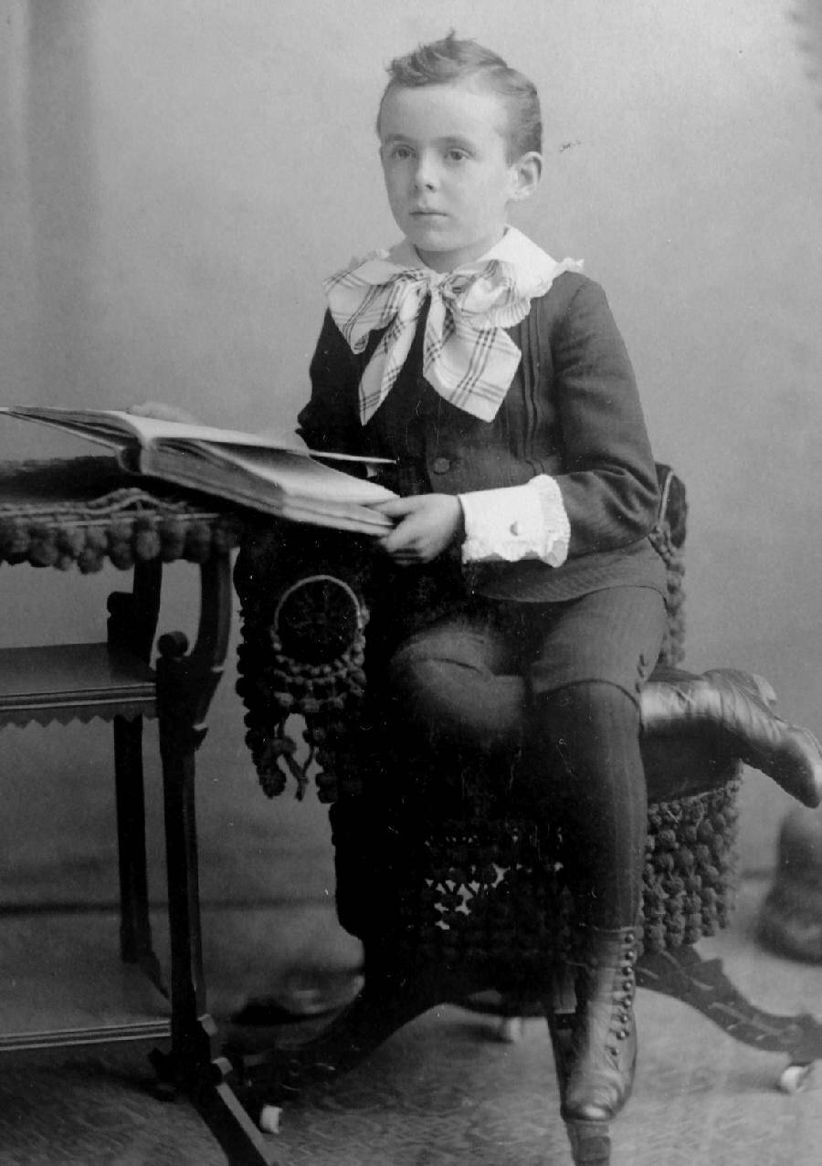 Notice the Pittsburgh boy in 1906 who wears black long stockings with either short knee pants or unusually high above-the=knee knickers. These stockings obviously come up to at least mid thigh. For him, just over-the-knee stockings wouldn't have been long enough. Perhaps we can explain the longer length of the stockings in these photos by supposing that they were not standard purchase in a store but home-knit. However, in the case of the Spencer family, we know that the family tended to purchase such items as stockings. Middle-class and upper-class American