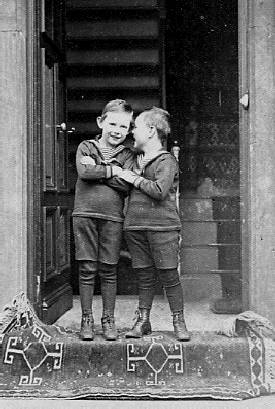 especially in the colder more northery states through the 1920s and 30s. It is difficult to process details because much of the information on this subject is derived from assessing photographic images. As many American boys wore long pants, it is impossible to determine what kind of socks/stockings they were wearing. Information is available of course in autiobiographies and articles written about childhood experiences. We would appreciate it if readers coming accross pertinent references would pass them on to the Webmaster. One reader remembers, "when I was about 7 years old and we lived in Northern Minnesota, that on several very cold days my mother made me wear long brown stocking fastened with garters pinned to my underwear to school. I hated it, because I thought only girls' wore long stocking." HBC has noted several images of Canadian boys wearing long stockings. This appears to have been quite similar to American patterns in the late 19th century. HBC has noted that some Canadian boys continued wearing long stockings in the 20th century when many American boys began wearing short socks and kneesocks. In particular Canadian boys appear to have worn longstockings for dress occasions. This appears to have been more prevalent among French Canadians than English Canadians.