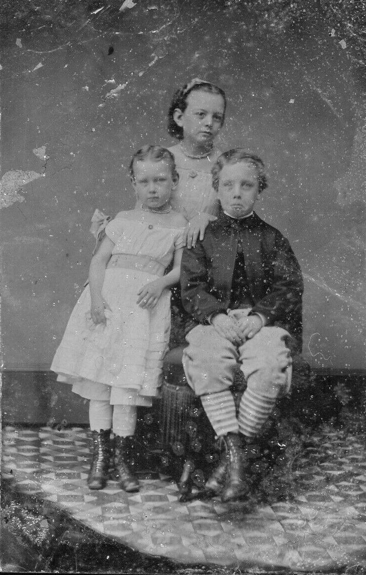 Boys still commonly wore long trousers in the 1860s, but knee pants were beginning to become popular. We tend to see most boys wearing white or light-colored stockings in the 1860s. Large number of images in the photographic record shows boys wearing white stockings. A good example is the Johnson boys in 1867. White stockings were very common. This was true of boys not yet breeched as well as those wearing knee pants. White stockings, however, were not universal. We do see some striped stockings.