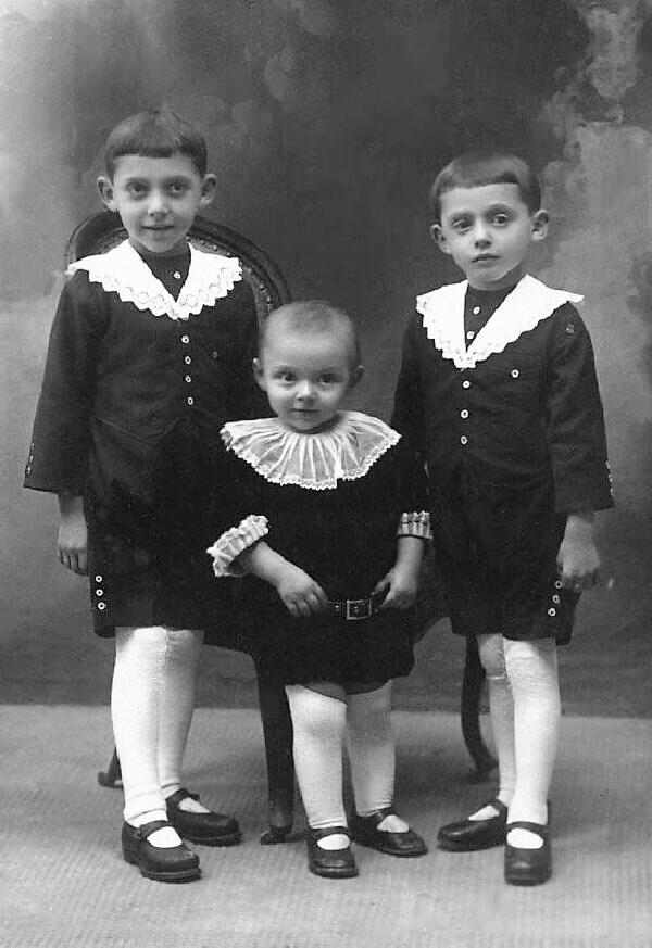 style on the younger boy, who is wearing a tunic or dress, apparently