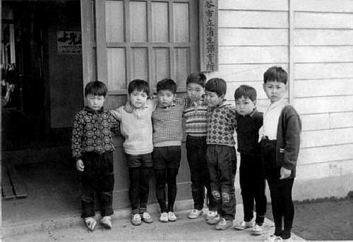 Tights made out of polyesters like Nylon were intoduced in the very-late-1950s or early 60s. We are not yet sure about the precise date. Tights seem to have been very widely worn by the early-60s. We sare not sure just how popular they were, but they seem quite common. Conventiond for tights seem very similar to long stockings when they were introduced. We see them being worn both for formality when dressing up as well as for play in cool weather. They were also worn to school. Cool weathe wear was important because so msany Japanese boys wore short psnts, even during the winter. They became very popular for children, both boys and girls, again following the convetions for long stockings. There is some indication that they were at first worn more by boys than girls, but we can not yet confirm this.