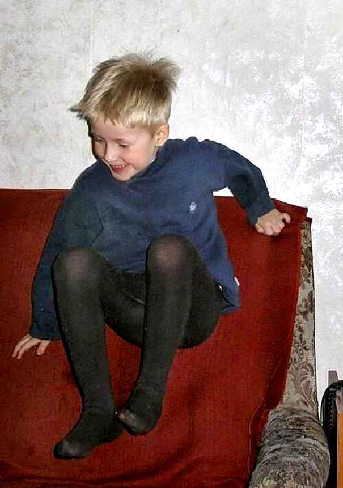 German sources report that some younger boys at home might wear tights without pants. Our Russian sources vary on this subject. One Russian source indicate that this was not the case in the Soviet Union, except for very young todler-age children. Some available images, however, suggest that it was the case at least in modern Russia. We suspect this may be somewhat similar to American children wearing pajamas after waking up in the morning or before going to bed at night. We assume in the evening that the boys are wearing tights they wore during the day. It seems unlikely that boys would put on tights when they came home. We see boys in many informal situations at home. Many look like the boys are playing before bed.