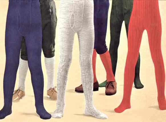HBC has noted boy styled tughts as early as 1970. These are tights with a fly or zipper front. They may have appeared earlier. HBC can not at this time establish the exact date. They seemed to have first appeared and been particularly common in Germany. HBC is unsure what type of tights that boys wore most commonly. Presumably this style was popular with boys. Often boys, especially younger boys, do not like clothes thaey have to fusss woth. You would think that the boy styled tights would have been much more popular with boys.