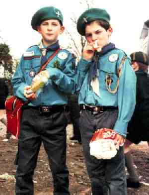 Figure 2.--Irish Catholic Scouts wear a light-blue beret. The Cubs, however, contnue to wear the traditional peaked cap. |