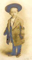 For the most part sailor caps were worn with sailor suits. A wide variety styles were availavle for the discerning mother. Any style could be selected, but a mother gnerally selected the cap worn by the national navy, although for younger boys more fancifal caps might be chosen. Generally speaking, however, sailor caps generally adhered to regulation styles more commonly than sailor hats. Mothers usually selected white caps for white summer suits and blue caps for blue winter suits. Straw sailor hats were considered to be appropriate for a boy's best party suit. They were especially popular with Little Lord Fauntleroy suits. Most styles of caps were not considered appropriate formal wear. This was especially true of the smaller caps. Some caps, however, were worn with a boy's party suit. The cap considered suitable for formal wear were the larger styles. While they had no large brim, the tops of these more formal styles extended beyound the head band of the cap giving a look mothers at the time considered suitably formal. One other boys' outfit was commonly worn with sailor caps--Buster Brown suits. Many mothers so liked the sailor suit style that they would outfit their sons in sailor outfits before breeching. Many stues of sailor dresses or middy blouses to be worn with kilts/skirts were available. Boys in dresses would almost always wear eith broad-brimmed sailor hats or the British-American style of flat-topped caps with very wide tops.