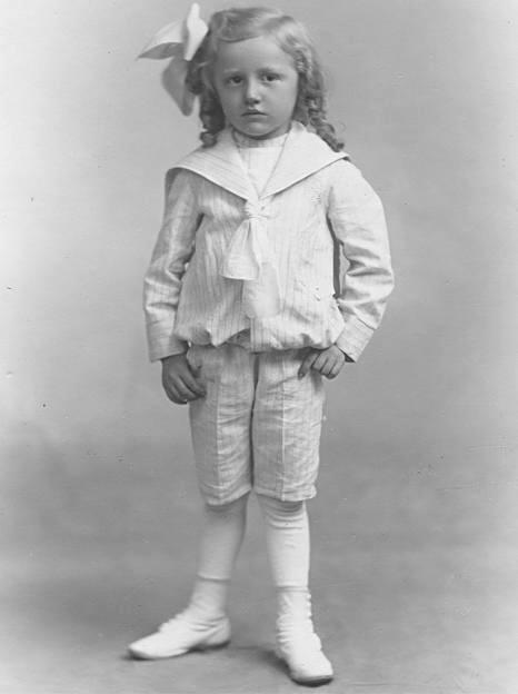 Boys continued wearing hair bows into the 20th century. Much of our information comes from the United States. We see quite a few American boys in the 1900s still wearing ringlet curls and hair bows in the 1900s. This was largely associated with the ringlet curl hair style associated with the Fauntleroy Craze. This style was passing out of fashion after the turn-of-the cetury, but still persisted in the 1900s decade, especilly the early 1900s. Most Americans boys who wore hair bows wore them with ringlets. This can clearly be seen in the pgotographic record. A good example is an unidentified boy wearing a Fauntleroy suit with ringlet curls. Hair bows were not as common as the 1890s, but still bows were definitely a well-established fashion. Both bows and ringlets became much less common in the 1910s and were little seen by the 1920s. This time line seems similar in both Europe and America, although ringlets were much more common in America. This may mean that hair bows were as well, but we are not yet sure about this.