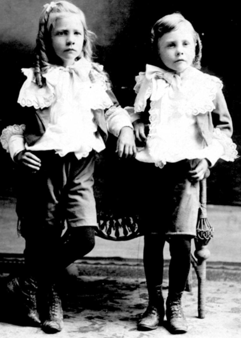 Boys wearing tunics at the turn of the century might wear long hair. This was a popular style in both France and America, although only a small number of boys wore hairbows with tunics. In America most boys wore hairbows with ringlets while in France curling hair was less common. Hairbows were most commonly worn with sailor tunics and were less common with Russian tunics or Buster Brown tunic suits.