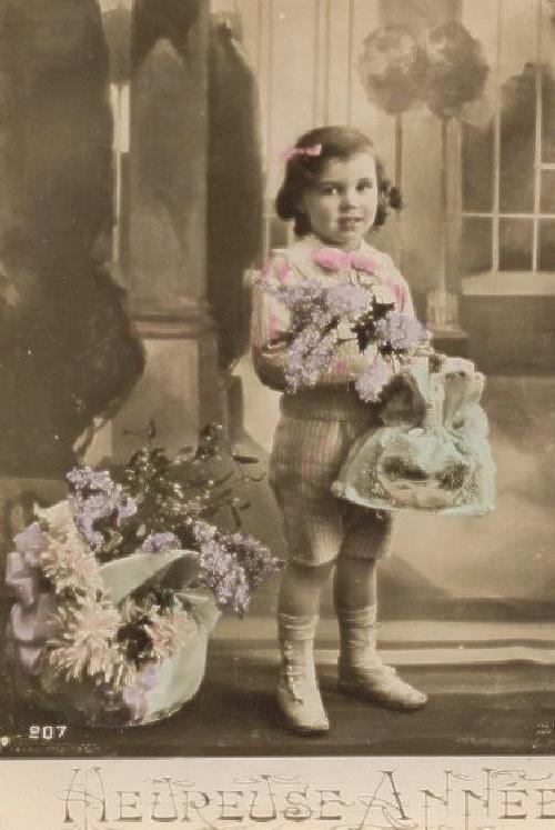 A good example are two boys, we think nephews of French photographers Paul Lancrenon in 1910. A small minority of boys wore them. This is suugested by the fact that only a few are pictured in French postcards--despite the fact that the boys in these cards are often depicted in fancy clothes. The relative importance of this fashion over time is difficilt to asses as boys commonly did not swear hairbows at the time, but just for speciall occasions. Hair bows for boys became much less popular after the War, except for very young boys. Some of the hairbow images are difficult to interpret. The 1920s photograph of the child on the scooter shown here is a case in point. The It may be a a girl as by the late 1920s hairbows for boys had become less common as was long hair for boys. There are several factors, however, suggesting it is a boy. Girls at the time did not commonly wear pants. Other aspects of the photograph suggest that it may be a boy: especially the clothes and shoes. Also this was not the 1990s. You would not expect a girl at the time to jump on a scooter and ride off.