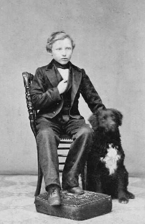 Some boys had their har cut before and others after breeching. We notice an American boy still wearing a dress in 1865. He has thick, but short haiir.