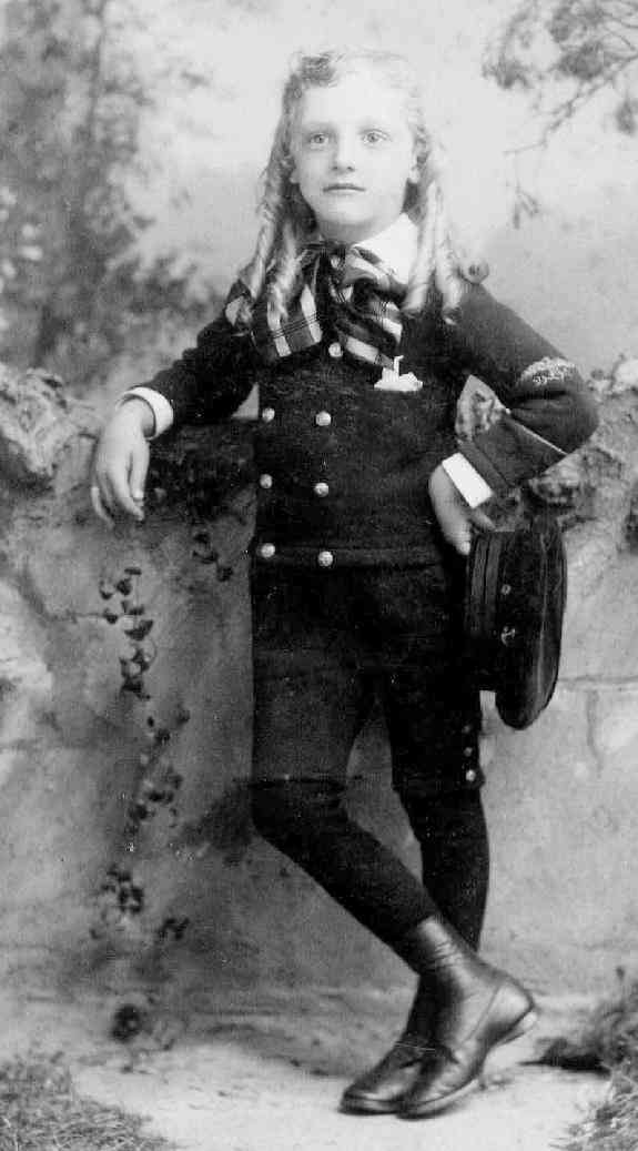 One of the interesting questions aout these old photographs is what the boys thought about their clothes and hair styles. The younger boys might not have given it a great deal of thought. Older boys like this are old enough to have their own ideas, although probably more influenced by mother than is the case today. Of ourse being schooled at home away from the influence of other boys would be a factor here. At any rate the pose and exprssion do not indicate that he objects to his ringlet curls.