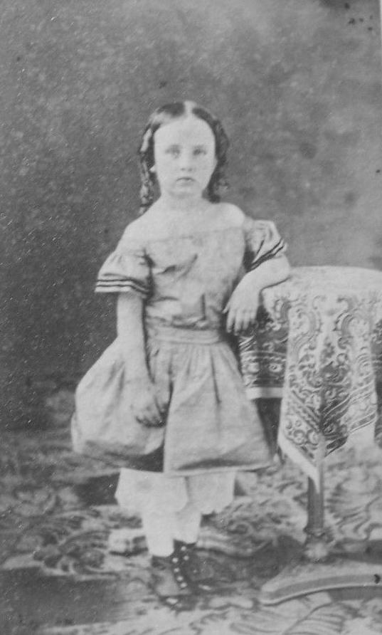 A problem here is that many of the children are unidentified and it is difficult to identify the gender if the younger children because many boys were not yet breeched. The best indicator is a center hair part. This was a girls' style. We do not know for a fact that younger boys did not have center parts, but we have found very few examples. The centerpart is the best gender indicator we know of, except for the relatively short period around the turn-of-the 20th century when center parts were popular for boys. And we see bery few breeched boys with ringlets in the 60s. The relative rarity of breeched boys with ringlets leads us to believe ringlets were much more popular for girls than for boys throughout the 60s. We do see boys with ringlets, but we see many more children we believe are girls with their hair done in ringlets. Just using prevalence in the photographic record can not be used as absolute proof, but we believe it to be the best single measure of prevalence at the time. Here we would welcome reader insights.